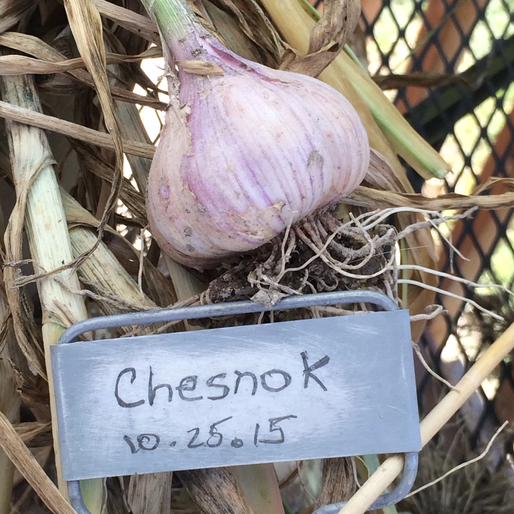 Chesnok red garlic, just picked.